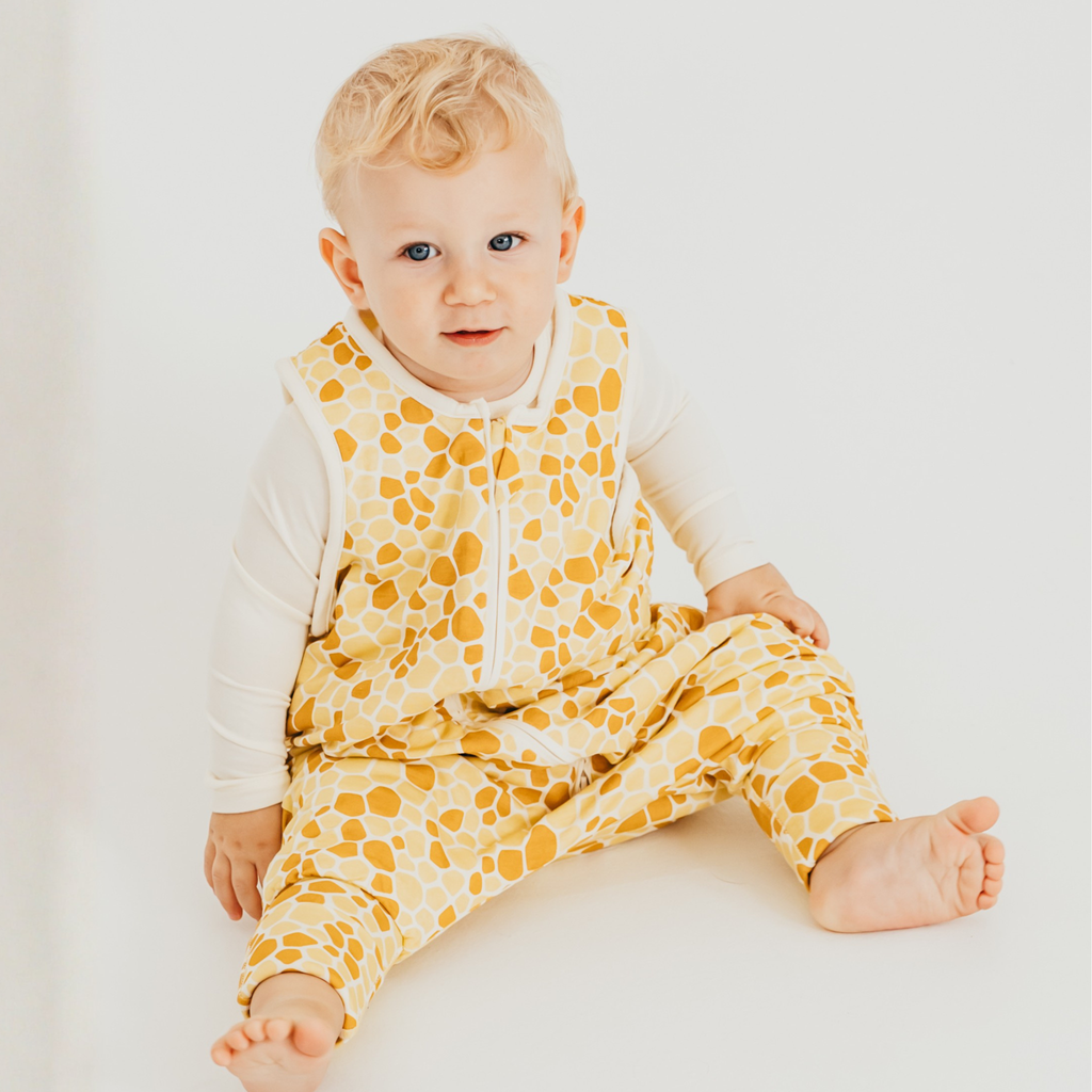 Pre izby s teplotou 20–23 °C odporúčame 1.5 TOG trojvrstvový podšitý detský spací vak s nohavičkami. Spací vak s motívom žirafy, bez rukávov a s nohavičkami je ideálnou voľbou v zime, v chladnejšej izbe.