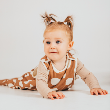 Pre izby s teplotou 20–23 °C odporúčame 1.5 TOG trojvrstvový podšitý detský spací vak. Bezrukávový spací vak s veľkými béžovými bodkami a s nohavičkovým zakončením je ideálnou voľbou na jeseň, jar alebo v zime v chladnejšej izbe.